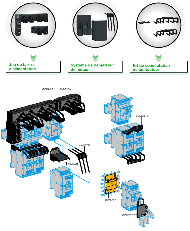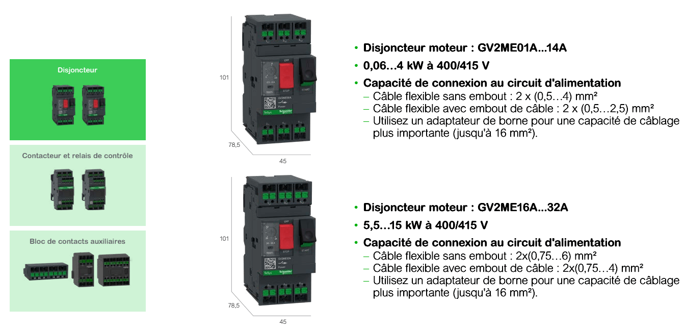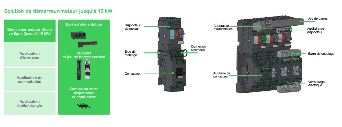 Pour des démarreurs de moteur allant jusqu’à 15 kW grâce à une gamme complète d’accessoires.