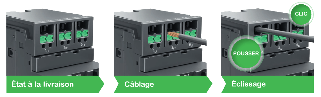 Contrairement aux contacteurs traditionnels à vis, TeSys Deca SNAP IN se raccorde sans nécessiter d’outils.
